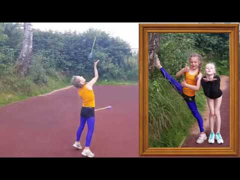 Учащаяся ДЮСШ города Краснознаменск - Кира, придумывает номер с булавами. Мурзик(её кот) тоже присутствует на тренировке.