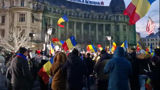 Mesajul „Marș la Moscova” proiectat pe clădirile din Piața