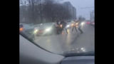 Mesajul „Marș la Moscova” proiectat pe clădirile