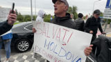 Simpatizanții lui Plahotniuc cu pancarte la ieșirea din aeroport