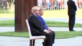 Меркель и Джонсон сидя слушали гимны перед переговорами
