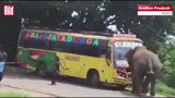 Разъяренный слон напал на рейсовый автобус в Индии