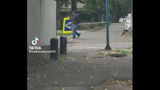 Bărbat filmat cum fură un semn de circulație