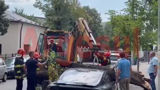 Maşină de lux avariată de două ori de un copac prăbuşit
