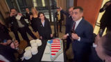 Simion a tăiat un tort în forma Groenlandei